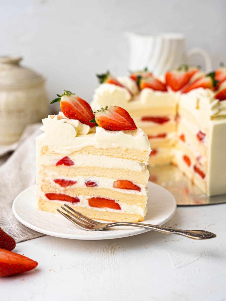 Combine liquids then stir in mix, oat bran, and baking powder. Pour batter into a square oiled cake pan, and bake at 350° F. for 15 to 20. minutes. Place whole straw- berries in a saucepan. Stir and cook down (sweetener may be added if desired). Serve strawberries over indi- vidual slice of cake.